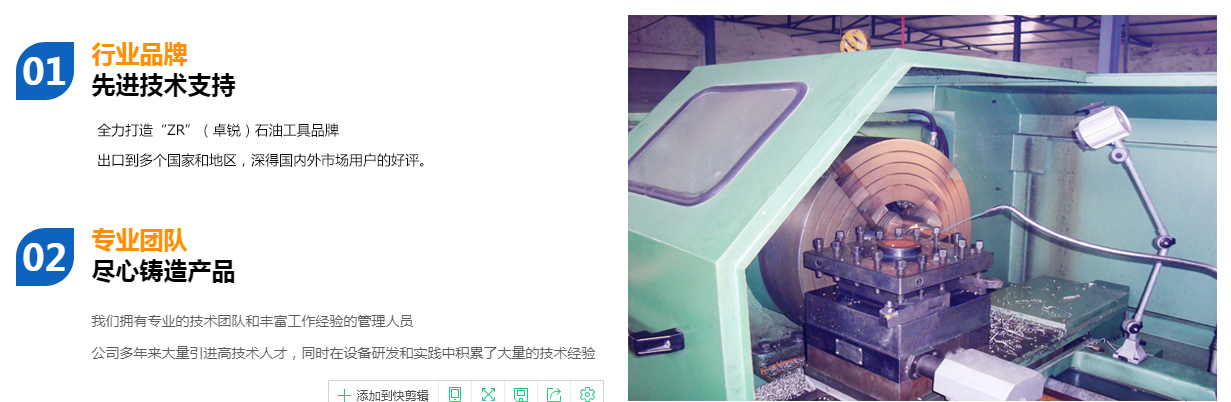 德州卓銳石油機(jī)械有限公司成立于2008年10月,專(zhuān)業(yè)生產(chǎn)螺桿鉆具拆裝架、無(wú)磁懸掛短節(jié)、螺桿鉆具配件、螺桿清膠機(jī)、PDC平面軸承、可調(diào)鉆具配件、360度全旋轉(zhuǎn)拆裝架、螺桿鉆具整機(jī)試驗(yàn)臺(tái)、螺桿鉆具馬達(dá)試驗(yàn)臺(tái)、渦輪鉆具配件、等壁厚螺桿定子加工機(jī)床、等壁厚螺桿鉆具等石油鉆井工具,打撈工具,固井工具及其配件。公司確立并始終堅(jiān)持不懈地發(fā)揚(yáng)“誠(chéng)信,務(wù)實(shí),高效,創(chuàng)新”的企業(yè)精神全力打造“ZR”(卓銳)石油工具品牌。業(yè)務(wù)實(shí)現(xiàn)了快速發(fā)展,并得到業(yè)內(nèi)人士的廣泛認(rèn)同,成為石油裝備制造業(yè)一顆璀璨的新星。